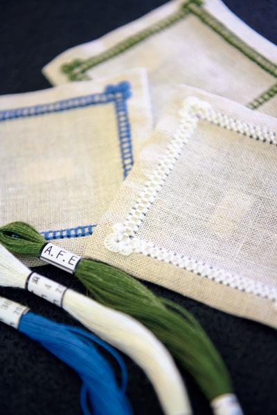 縫製済コースターとA.F.Eの麻刺繍糸がセットになっている。