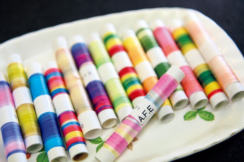 A・F・Eは、刺繍糸では定番とされる綿の25番糸を作らずに、色にこだわり、素材にこだわり、ここにしかない糸だけを求めたものづくりを続けてきました。