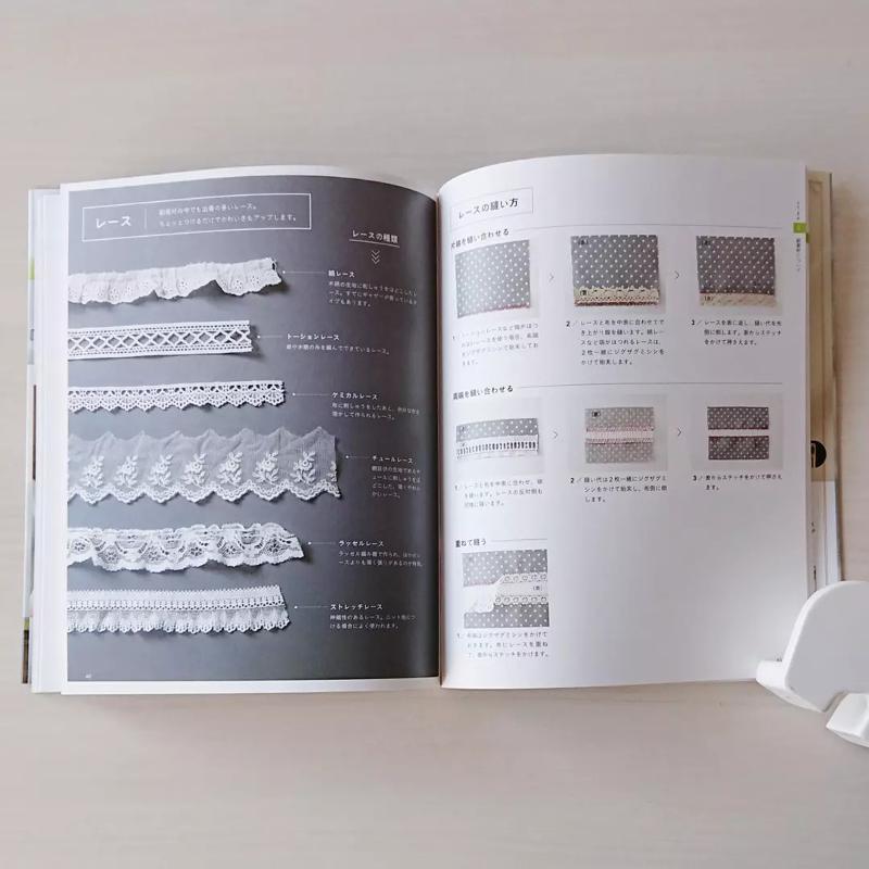 さらに、レースやファスナー、留め具などの副資材のつけ方も紹介しているので、手元に置いておけば、ソーイングの困ったがまるっと解決できる1冊です。