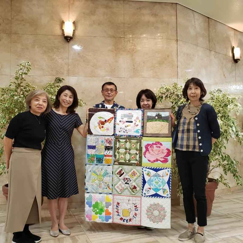 ミニキルトの一部は後日つなぎ合わせて、2枚のキルトにしてフードバンク関西を通じて児童養護施設他に寄付される予定です。