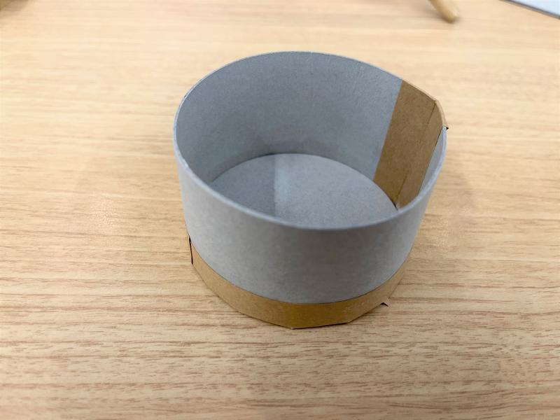 今回は丸箱なので、本体の側面は薄めの厚紙でぐるっと巻き付けるような組み立てです。