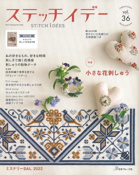 作品、作り方、図案はステッチイデーvol.36に掲載中。