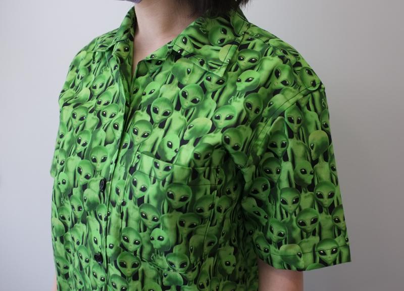 USAコットンのエイリアン柄を大胆に使ってみました。