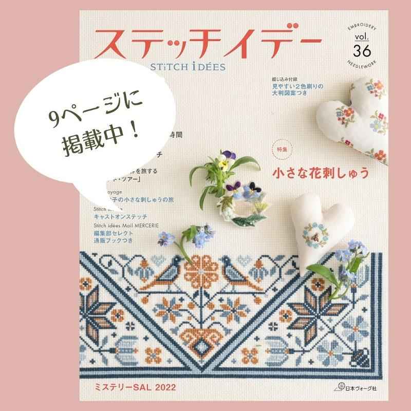 作品、図案、作り方はステッチイデーvol.36に掲載中!