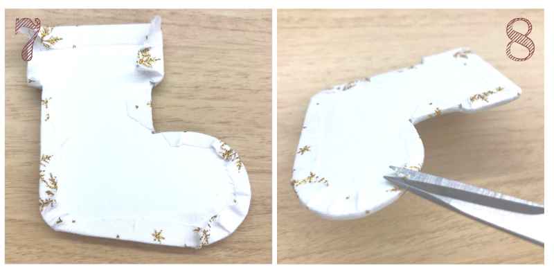 6.グルーが乾いたら切り込みを入れて、のり代を貼っていきます。