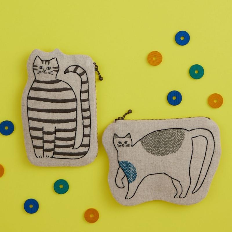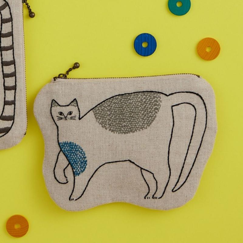 今回は、猫ちゃん好きのみなさまにぜひ見てほしい✨こちらをじ~っと見つめる表情が味わい深くて癒される、かわいいにゃんこ刺しゅうポーチのご紹介です。