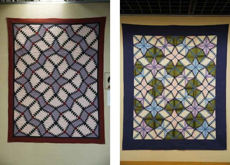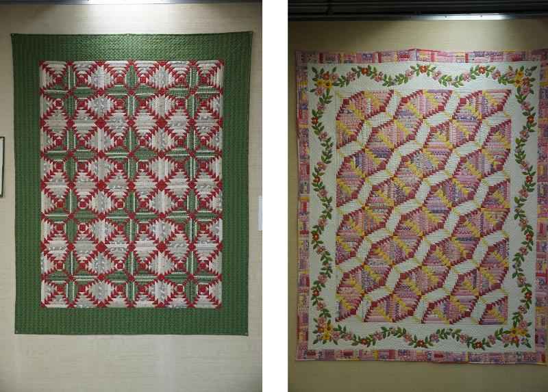 でき上がったキルトを並べると配色とセッティングによって、全く違うキルトに仕上がり「他の人の作品を見ることで勉強になりました」という生徒さんの声も多いとのこと。