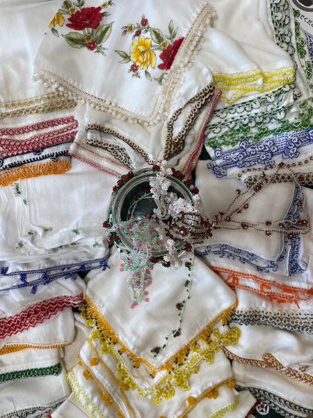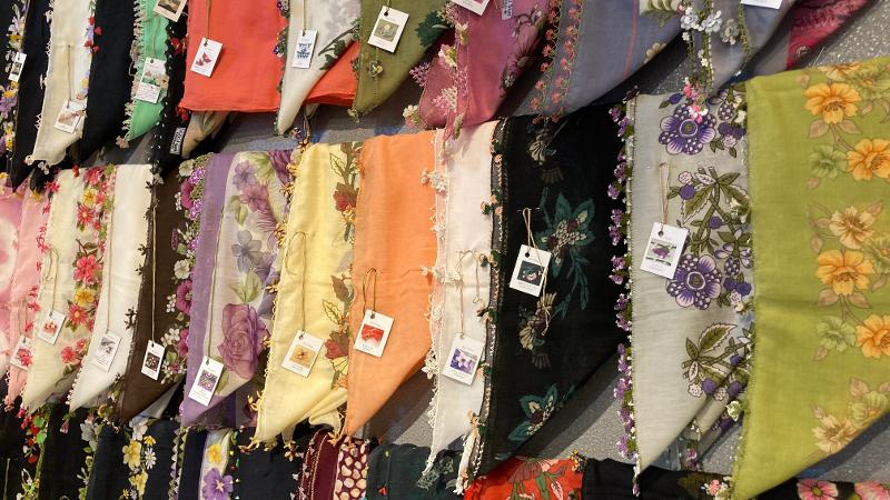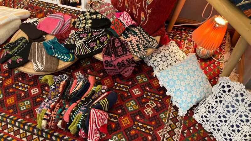 お花から果物、蝶々まで、さまざまな種類とモチーフのオヤが展示されており、非常に見ごたえのある内容でした!手編みのルームシューズの展示もありましたよ。