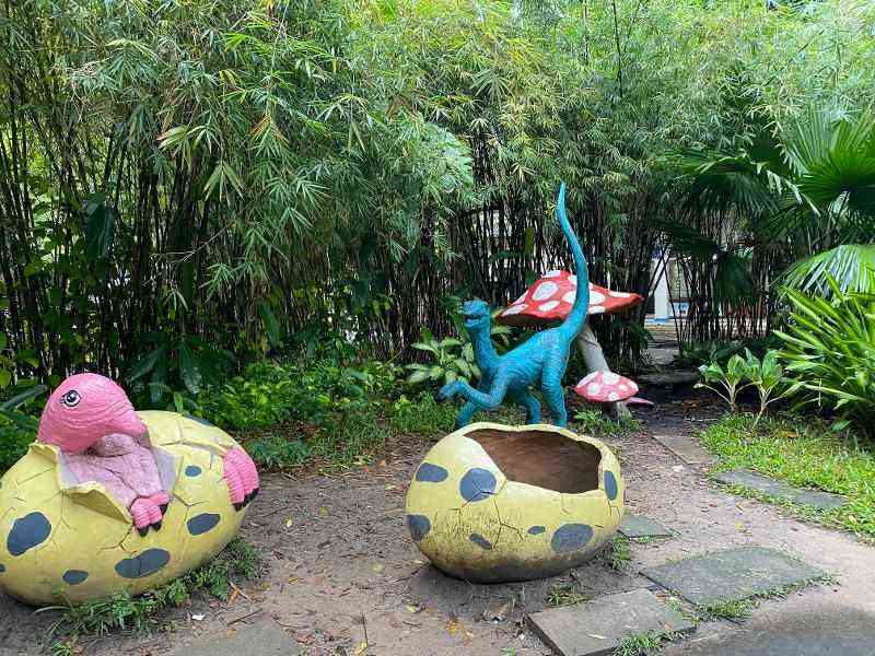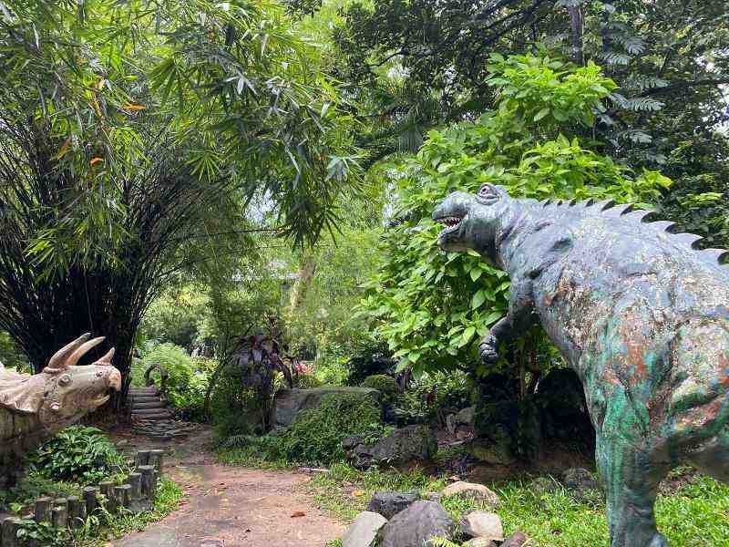 動物園からやや雰囲気が変わったエリアになり、そこに入っていくとなぜか恐竜がお出迎え!