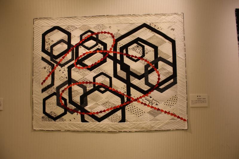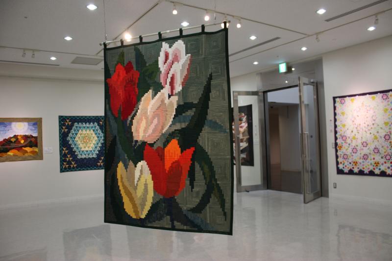 両面から違うデザインを楽しめる技巧を凝らしたリバーシブルキルトが広い空間に飾られたほか、視覚効果を生かしてまるで立体的に飛び出しているかのように見える作品、風景や幾何学のキルトなど、個性が光る芸術的なキルトは見ごたえがあり、多くの来場者がゆっくりと一つひとつの作品を鑑賞していました。