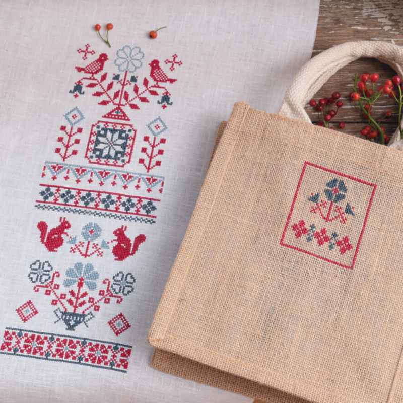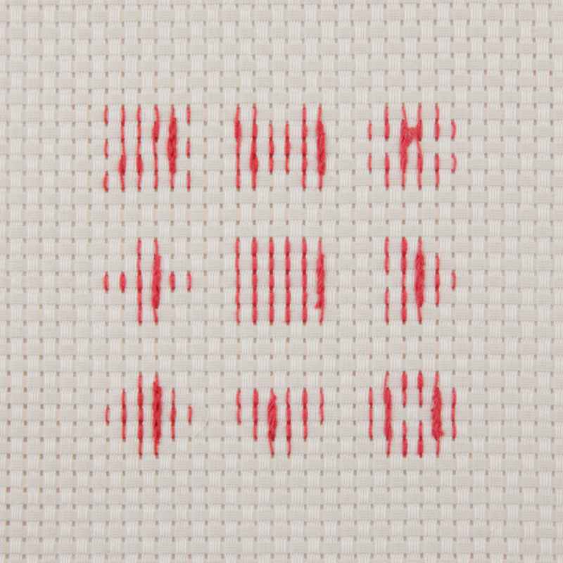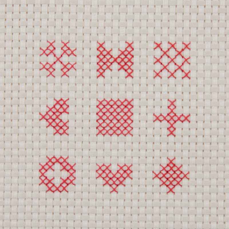 マス目を数えて「×」状に刺し、図案を表現するクロスステッチ。