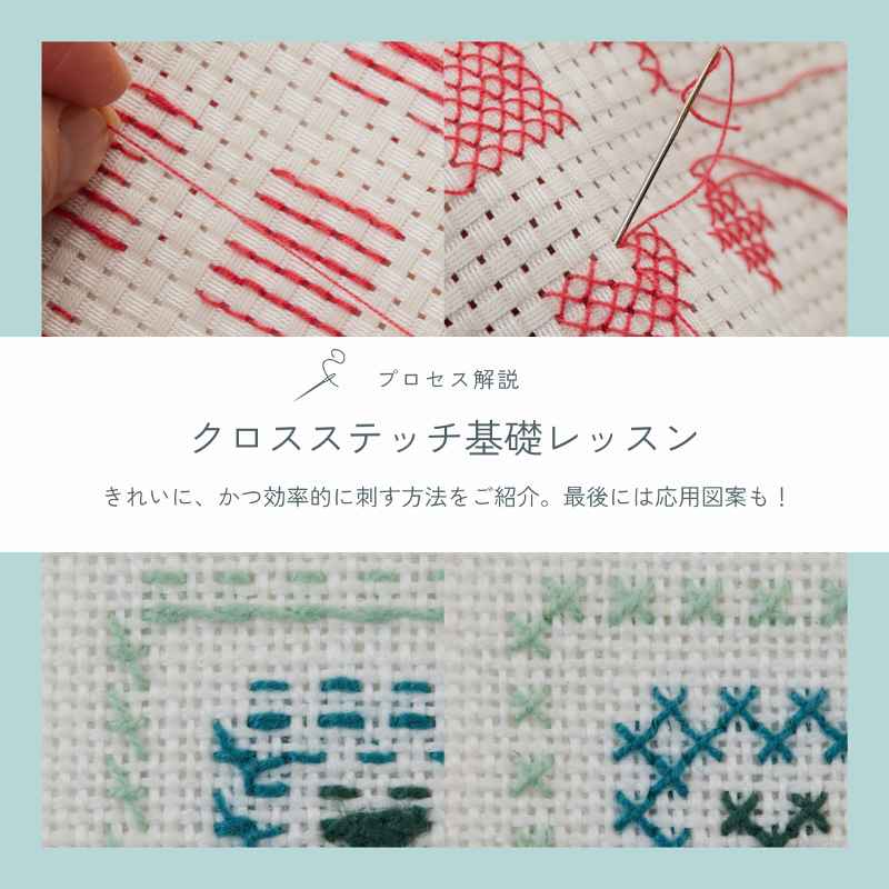 裏が縦に渡るきれいなクロスステッチの刺し方をご紹介しています◎