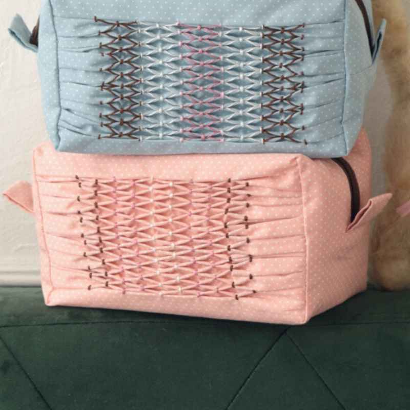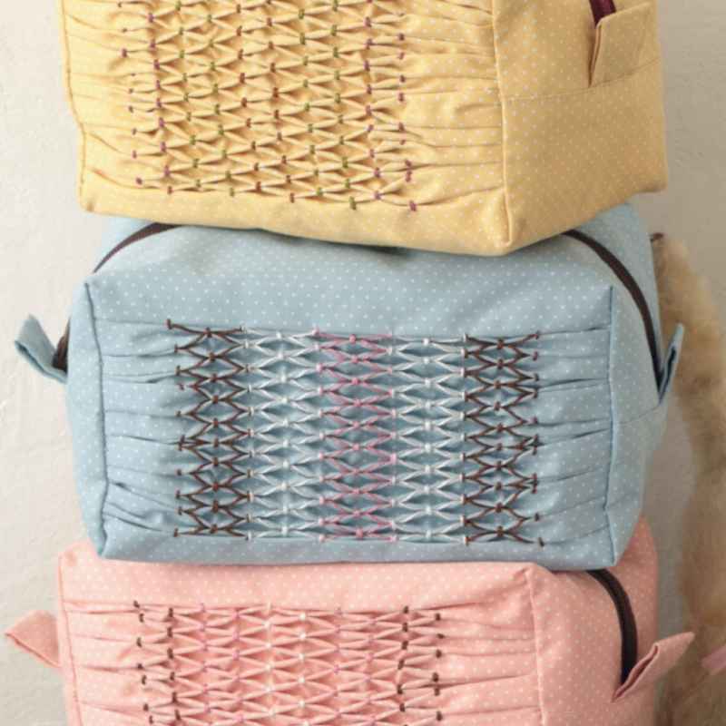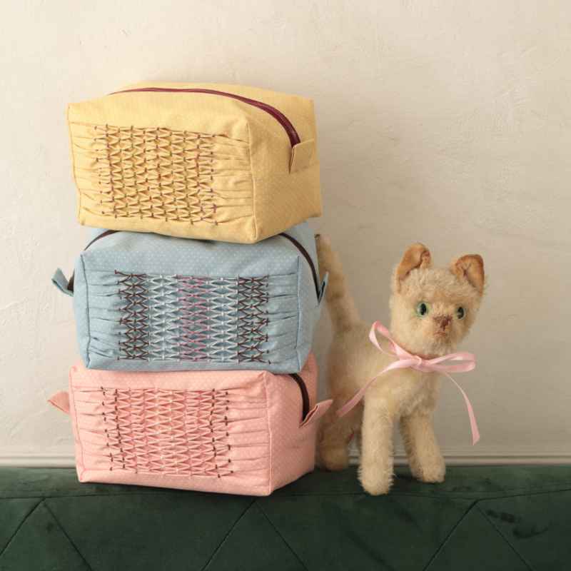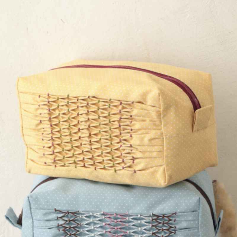 作品「スモッキングのボックスポーチ」