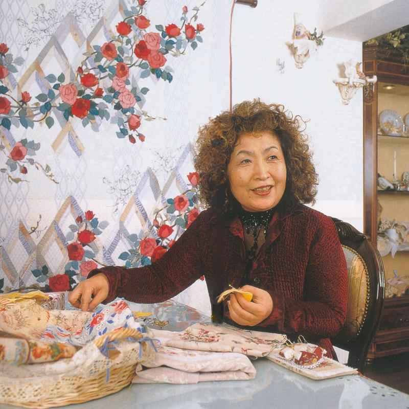 【プロフィール】1979年NHKカルチャースクールでパッチワークキルトを学び始める。1985年「AIQAキルト・フェスティバル」(テキサス州・ヒューストン)出品。「キルト‘85」(スイス)招待出品。「キルト・イン・ジャパン’85」入選。1989年「女流クラフト作家展」出品。「AQSキルト・フェスティバル」(ケンタッキー州・パデューカ)出品。「ザ・グレート。アメリカン・キルト・フェスティバル2日本の宝石達」(ニューヨーク)特別出品。1990年「キルト展」(ニューイングランド・キルト美術館)出品。アトリエ「ウェーブK」主宰。