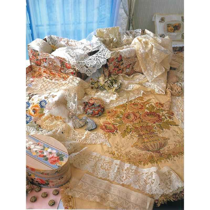 アトリエのあちこちに置かれた、お宝箱や家具の中や上にはイギリスやアメリカなど外国旅行で買い求めたという、アンティークなレースやリボン、ボタン、陶器などがいっぱい詰め込まれている。