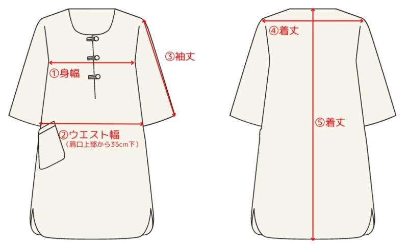 ① 身 幅 :左右の脇下から脇下までを直線で測ります。