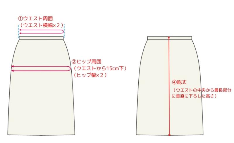 ① ウエスト(周囲):ウエストラインの端から端を直線で測り、2倍します。