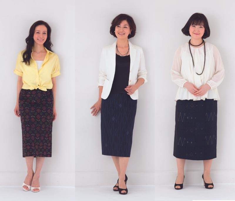 地味な着物も、派手な着物も、スカートでは柄が活き活きします。