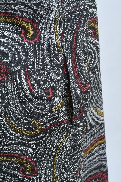 アシンメトリーに左タック、右ポケットが付いています。