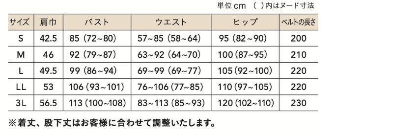 ウエストの数値はゴムの伸び縮みの範囲を表しています。