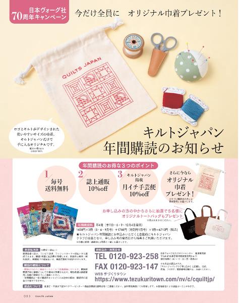 今だけ、キルトジャパンオリジナル巾着をプレゼント!