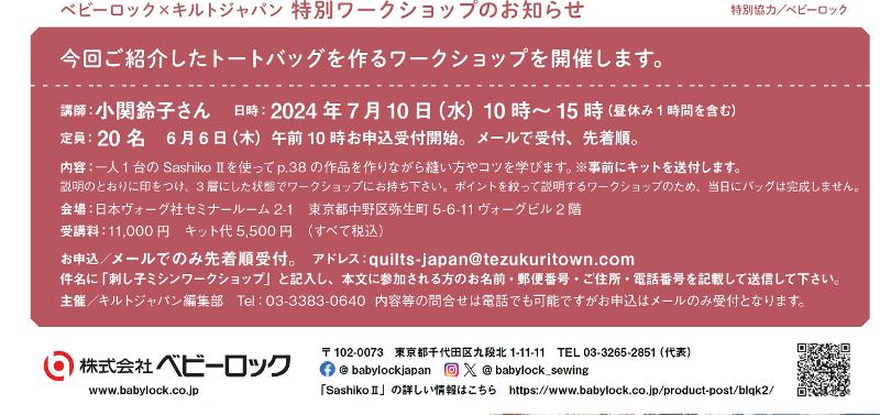 申込先/quilts-japan@tezukuritown.com