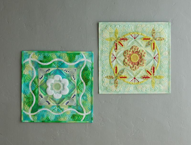 今回のミシンキルトレッスンでは、違うキルトトップに同じルーラーワークをした作品をご紹介。