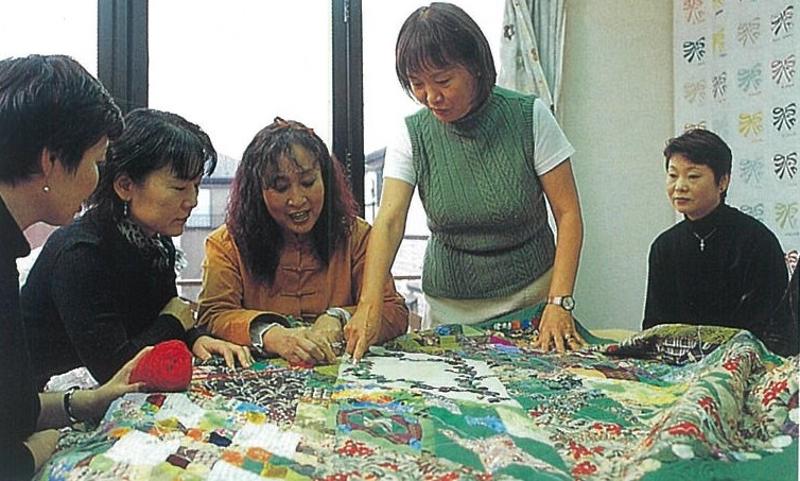 鷲沢さんは、大学卒業後すぐに結婚してから2年ほどで今のお教室がある国立に引っ越した。それを機に大好きな手芸に没頭し、パッチワークと出会う。その頃は日本のパッチワークの創成期ともいうべき時期で、洋書を訳しながらの独学だったとはいえ、横のつながりもでき始め、講師ばかりのパッチワークの研究会で野原三輝さんに言われた言葉は今でも忘れられない。「僕たち、初めからパッチワークに関わってきているんだから、これを広めていく義務があるよね」「三輝さんにそう言われて、ああそうだ、楽しい世界を広めようと思いました。その後ずっと、このことを見失わないようにやってきたような気がしますね」その後鷲沢さんの「キルトおぶはーと」の第1回作品展麻布美術工芸館で開いたとき、三輝さんがそれを見て「いい指導をしているね。作品に表れているよ」と言われた。どんなほめ言葉より嬉しかったと言う。