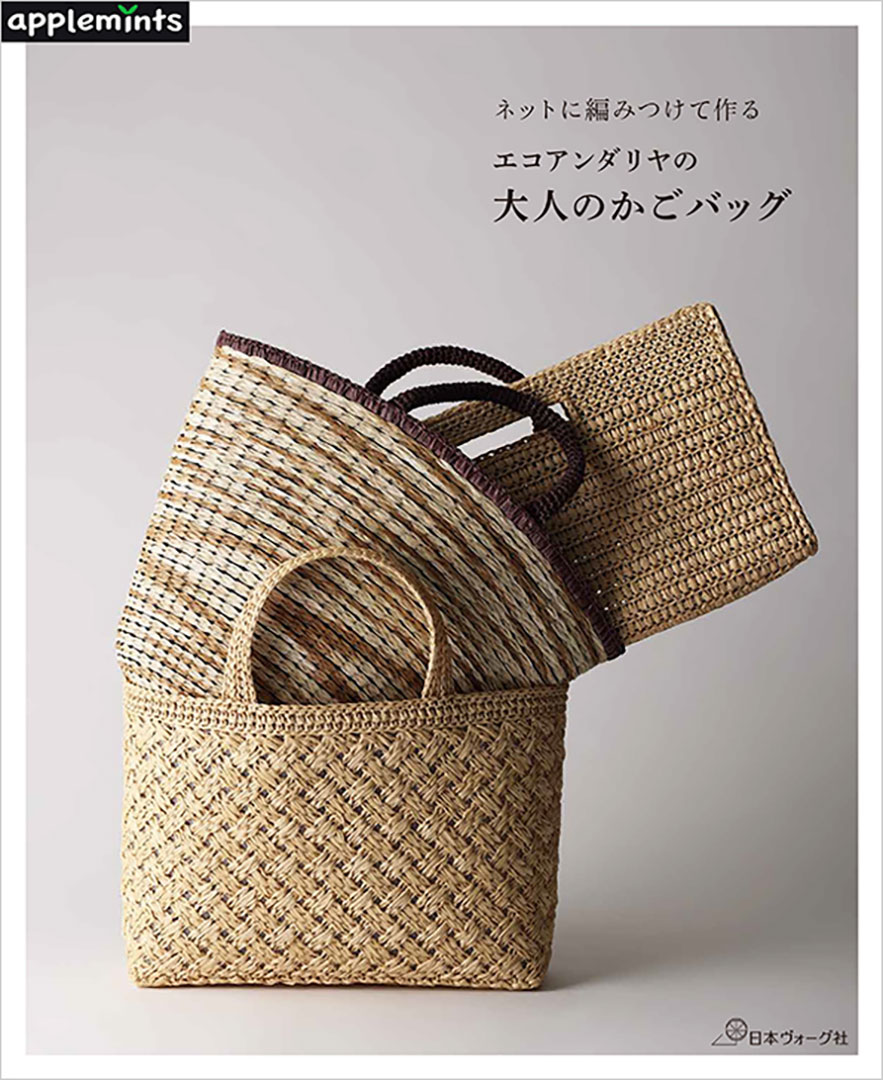 〈applemintsシリーズ〉ネットに編みつけて作る エコアンダリヤの 大人のかごバッグ