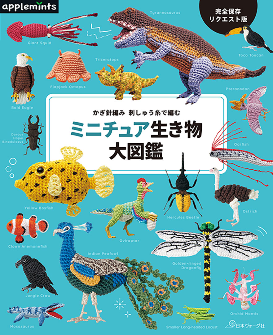 〈applemintsシリーズ〉完全保存リクエスト版 かぎ針編み 刺しゅう糸で編む ミニチュア生き物大図鑑