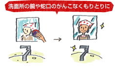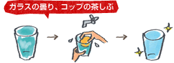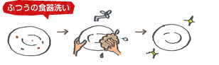 - 水さえあれば、食器やキッチンの汚れをピッカピカに洗い落とせます。