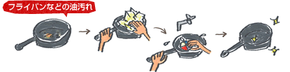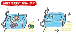調理器具、キッチンまわり、洗面台、浴槽の汚れも同様に洗います。