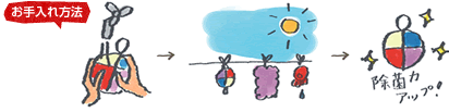 水洗いをして太陽のもとで干して乾かすだけの簡単なお手入れです。