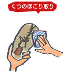 エコたわしに水かぬるま湯(30℃以下)を含ませ、よくこすって洗います。