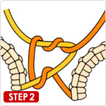 2糸端を図のように結びます。