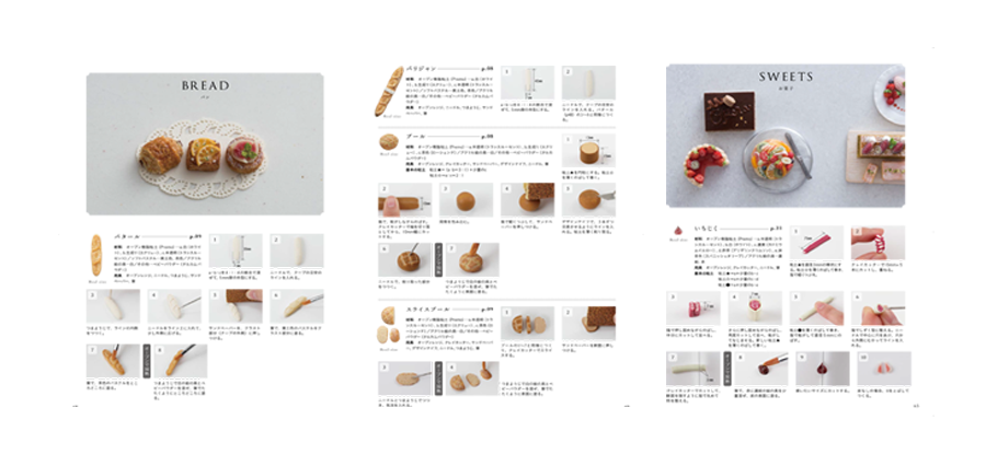 オーブン樹脂粘土で、12分の1サイズのお菓子とパンがつくれる本。パリジャンやカンパーニュなどのパンや、ミルフィーユやシャルロットなどのお菓子がたくさん登場します。クリスマスやハロウィンなど、イベントにまつわるフードも充実!オールカラー写真つきのプロセスで、丁寧に解説します。WEBでは製作に必要なオーブン樹脂粘土(Premo)も発売中!