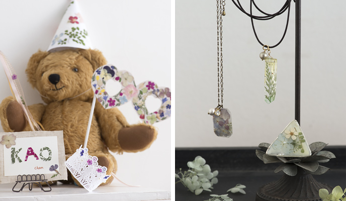 押し花を軽くボンドで止めながら並べれば、あっという間に、動物が誕生!貼り絵のような感覚で、短時間で楽しめます。