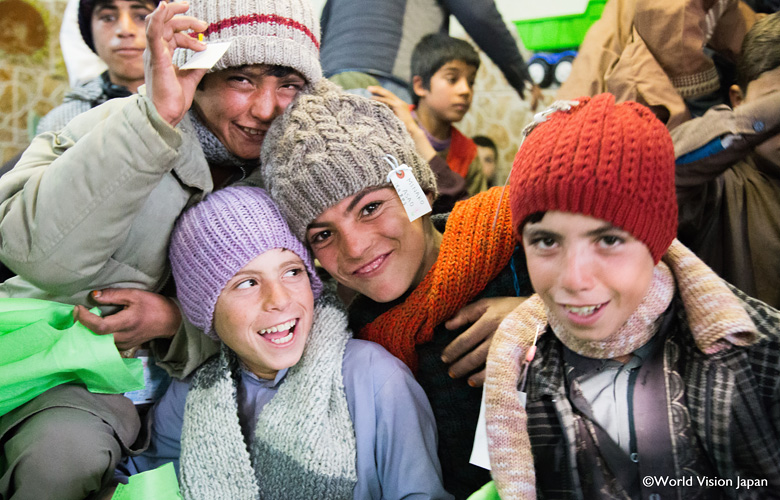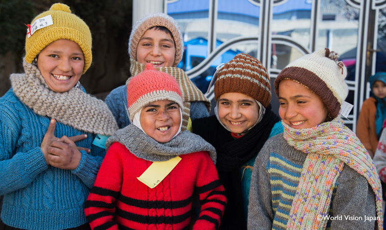アフガニスタンのヘラートは冬の寒さが厳しいところで、気温はマイナス10℃にまで下がることもあります。しかし、多くの家庭では、厳しい経済状況から、暖かい服や小物を子どもたちに買い与えることができません。