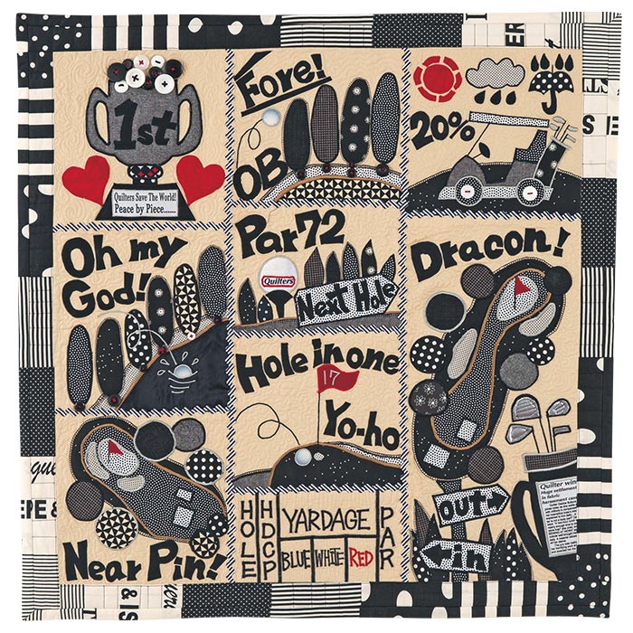 キルトジャパン編集部:図案の面白さと、ゴルフ用語をインパクトのあるアルファベットで表現したことで楽しい作品に仕上っています。