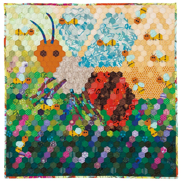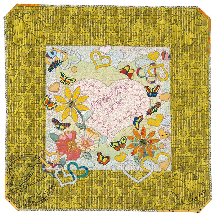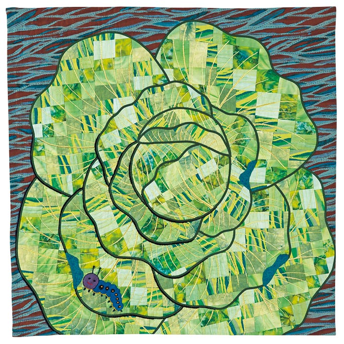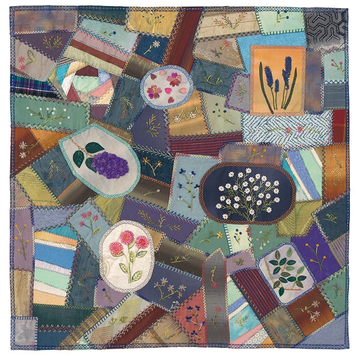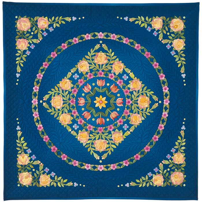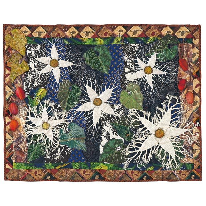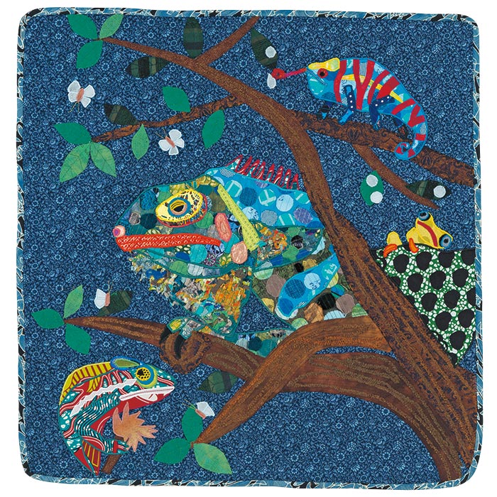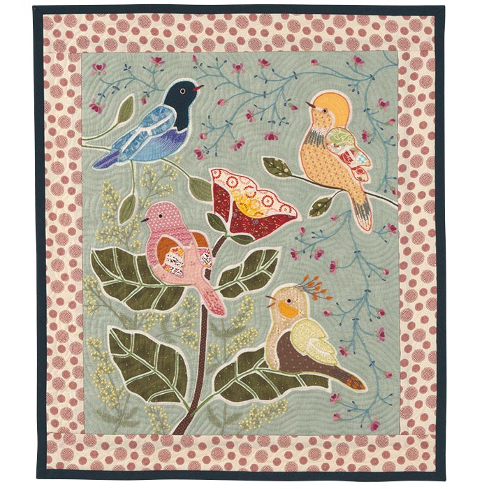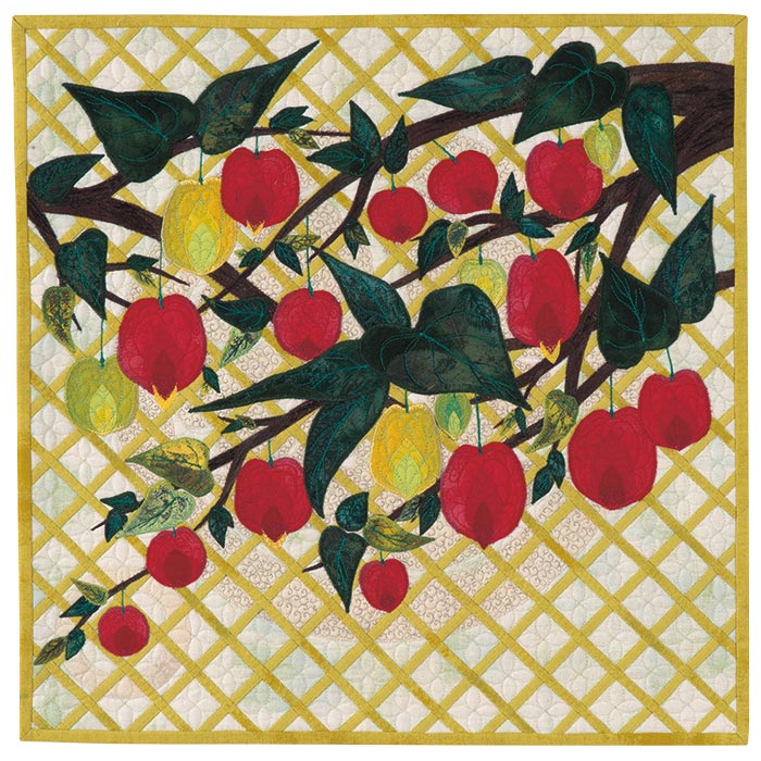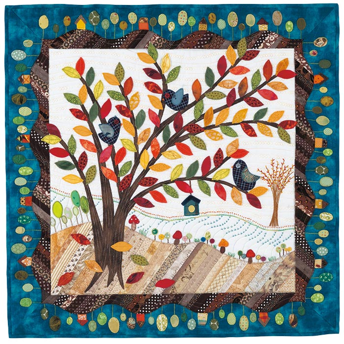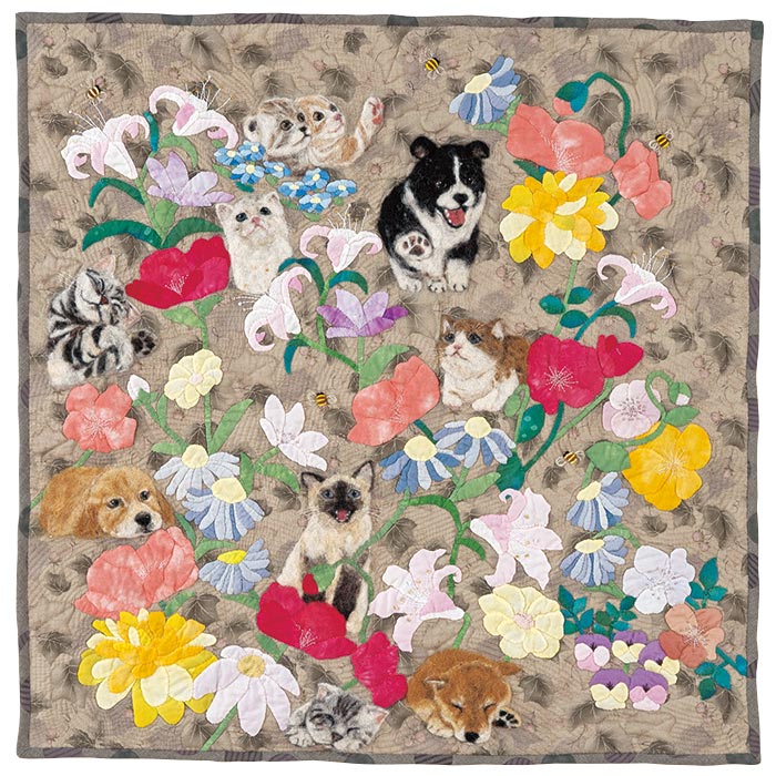 キルトジャパン編集部:押さえた色調の中にも、よく見るとたくさんの植物や動物が表現されていて、一針一針楽しんで作ったことがよく分かる作品です。