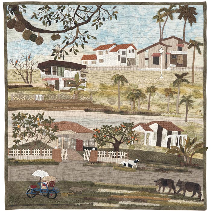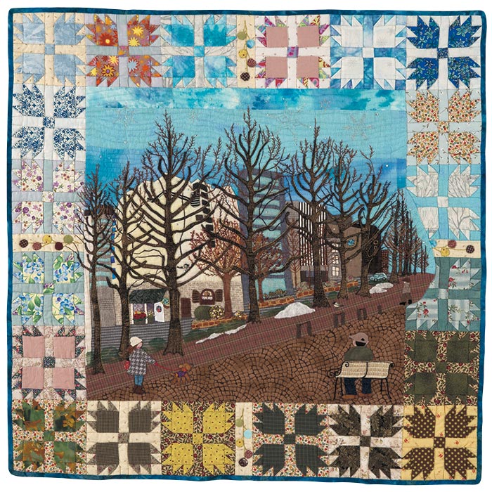 服部まゆみ:古き良きオールドタウンを思わせる作品です。丁寧なアップリケで表現した家々が渋い雰囲気で、まるで映画のワンシーンを見るようです。