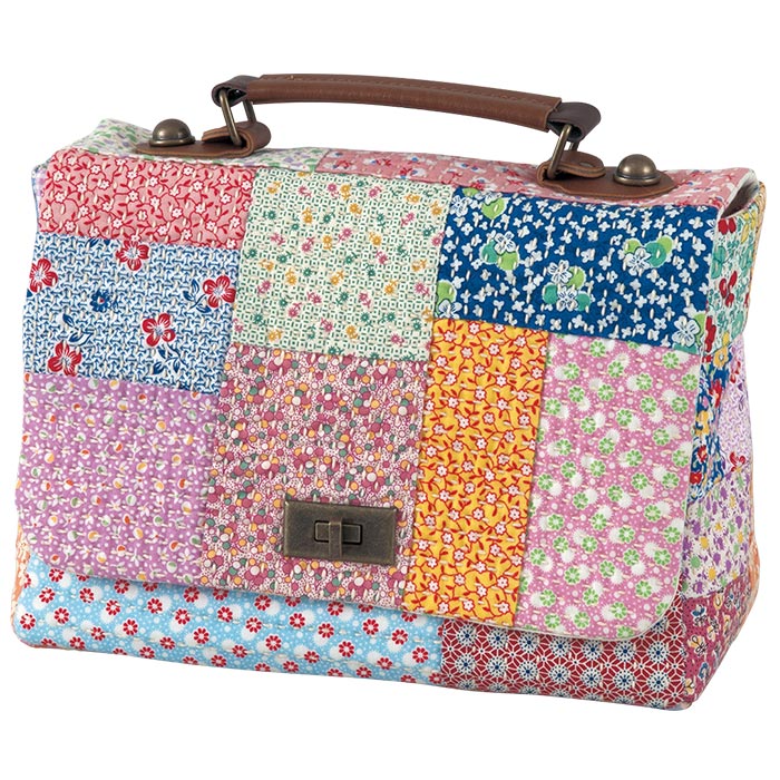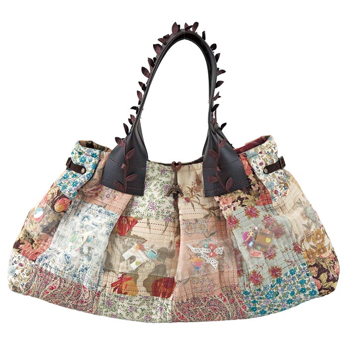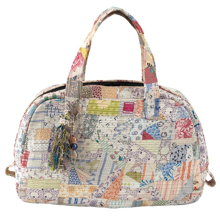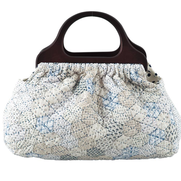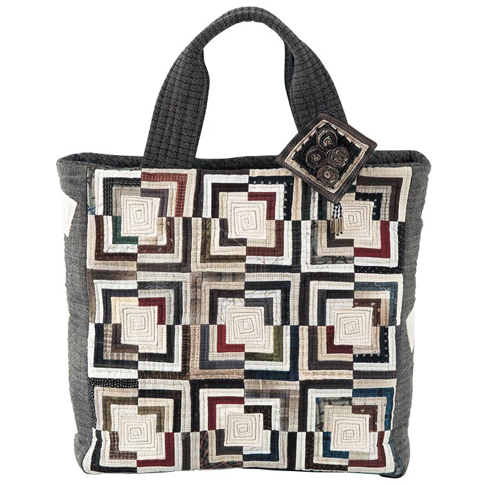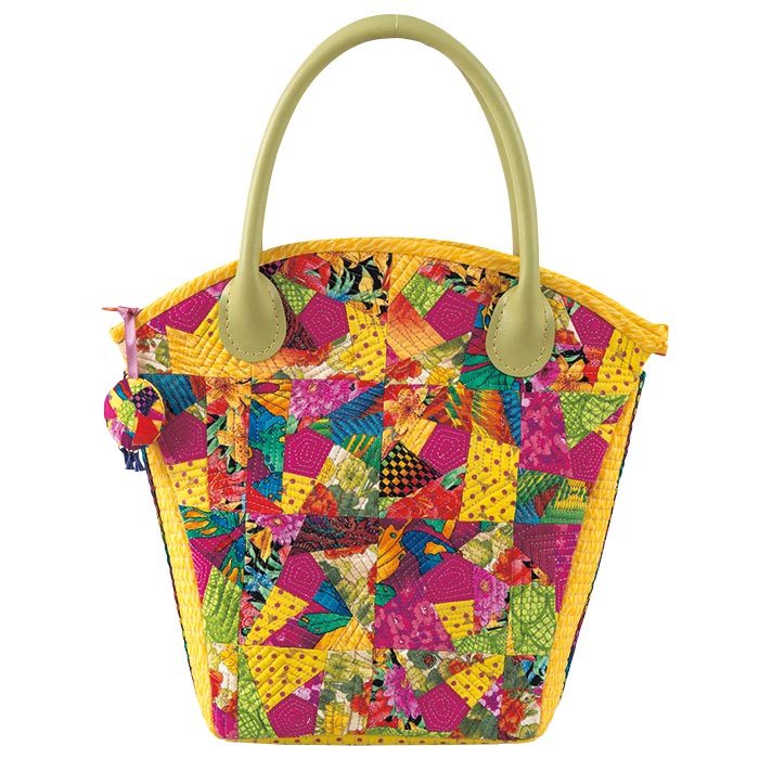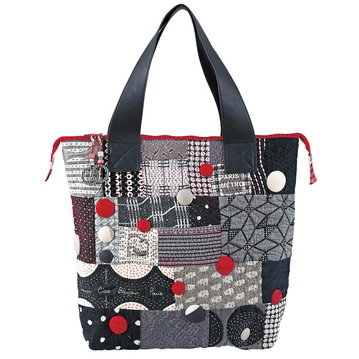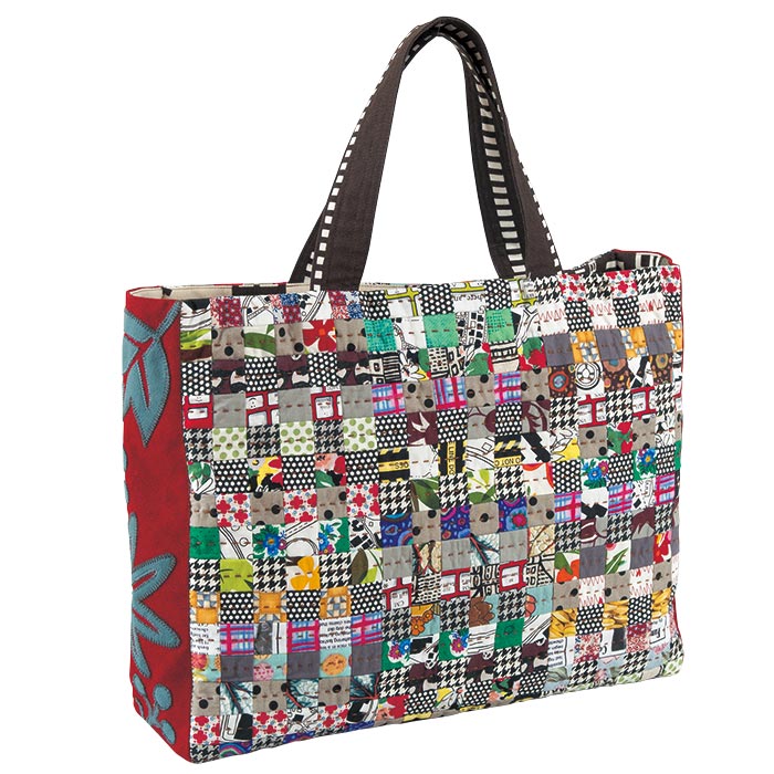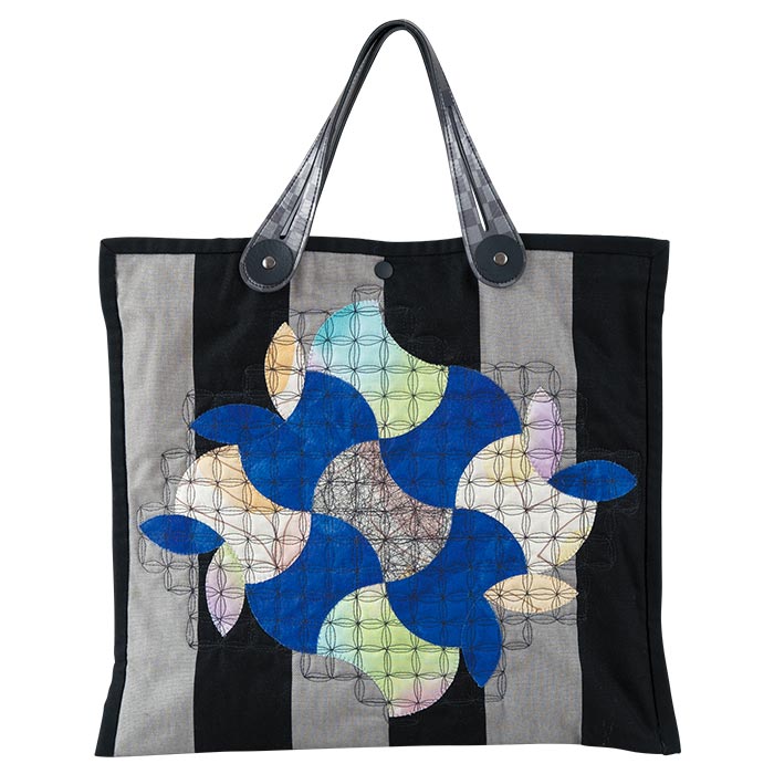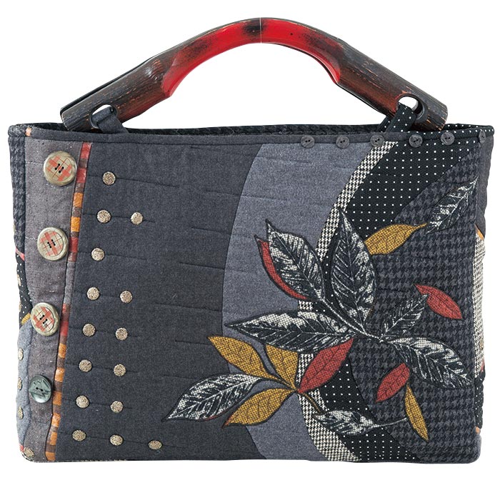 キルトジャパン編集部:パッと目に飛び込んでくる華やかなパッチワークをモノトーンでまとめた、印象的なバッグだと思います。