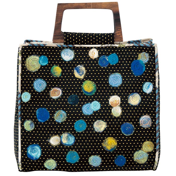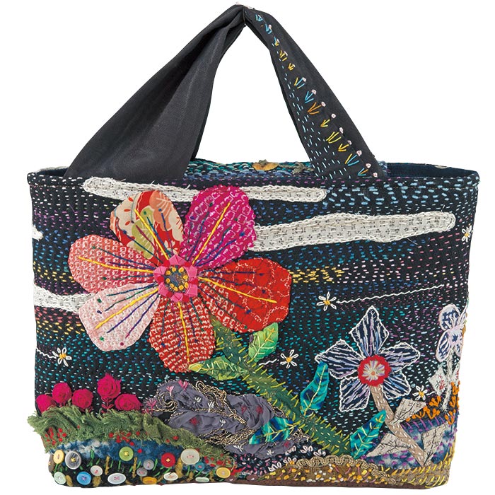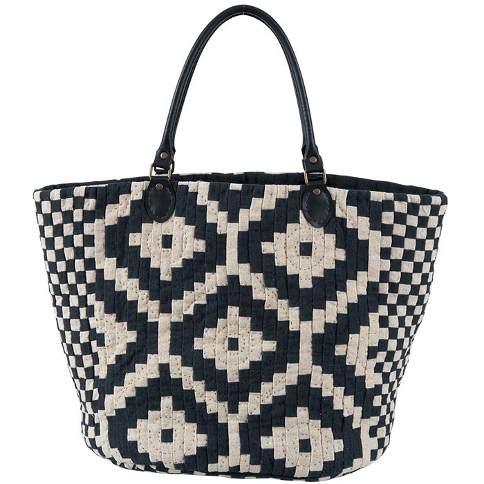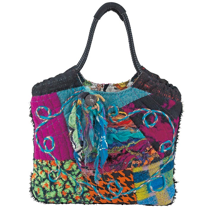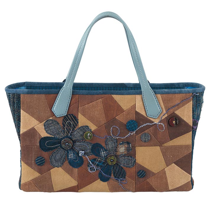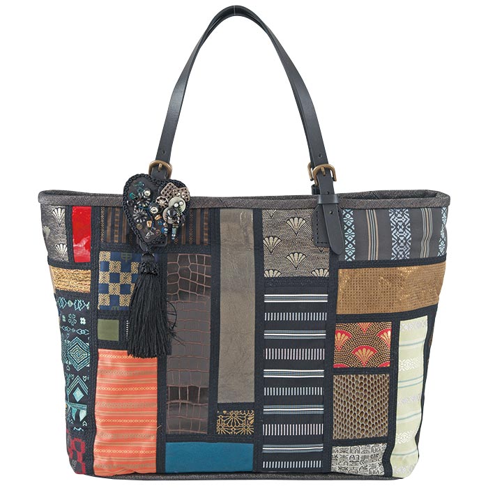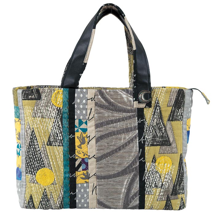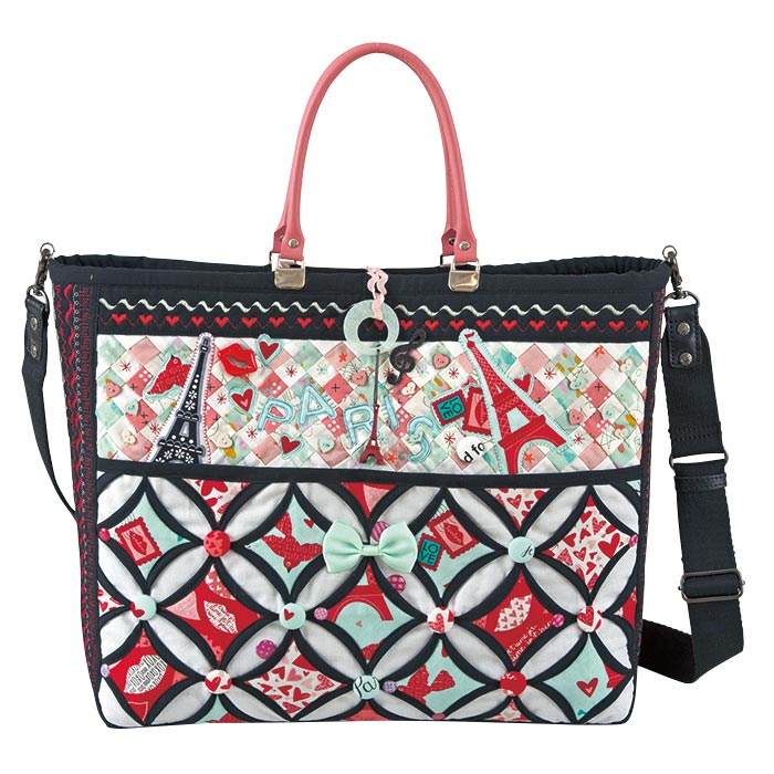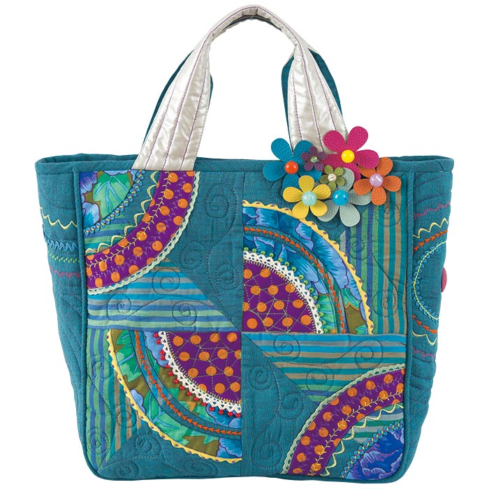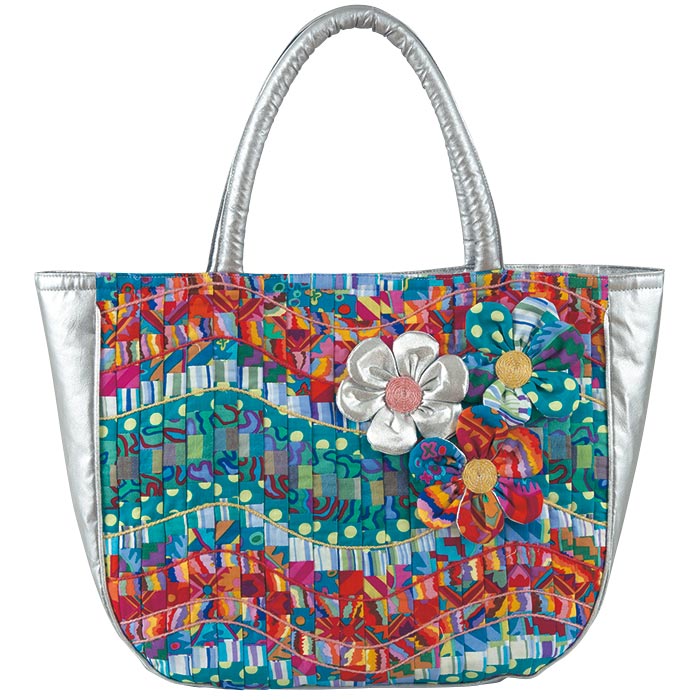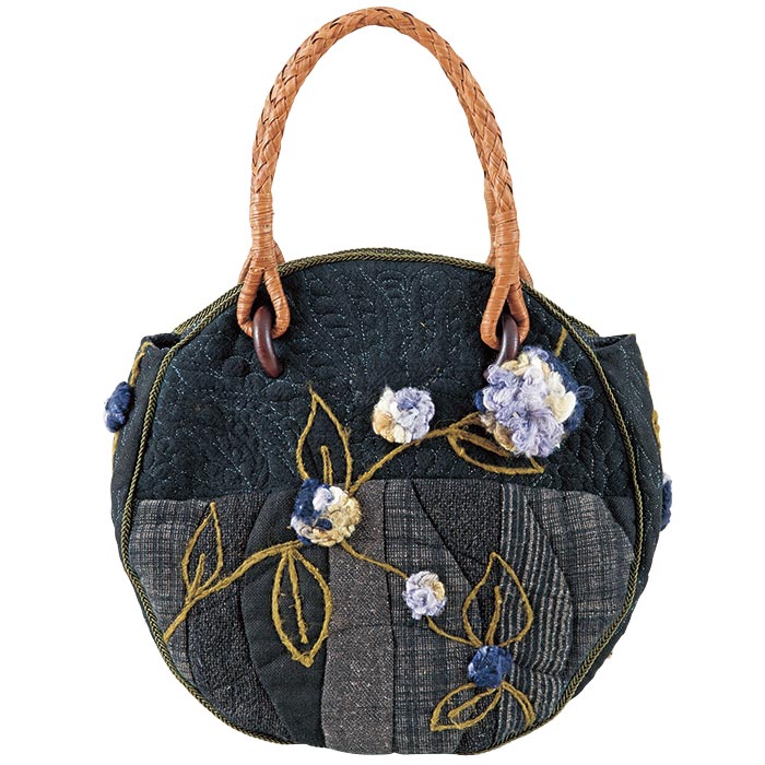 キルトジャパン編集部:パッと目に飛び込んでくる華やかなパッチワークをモノトーンでまとめた、印象的なバッグだと思います。