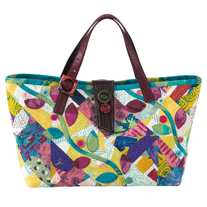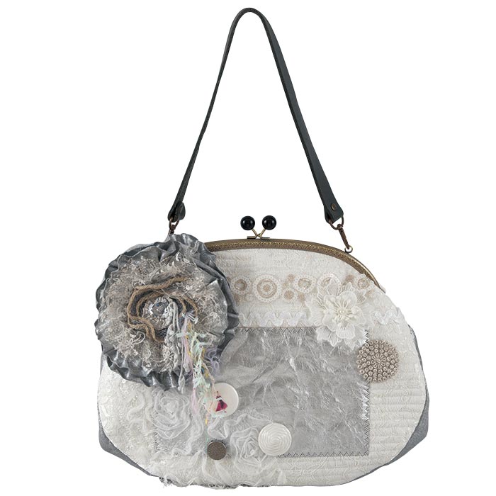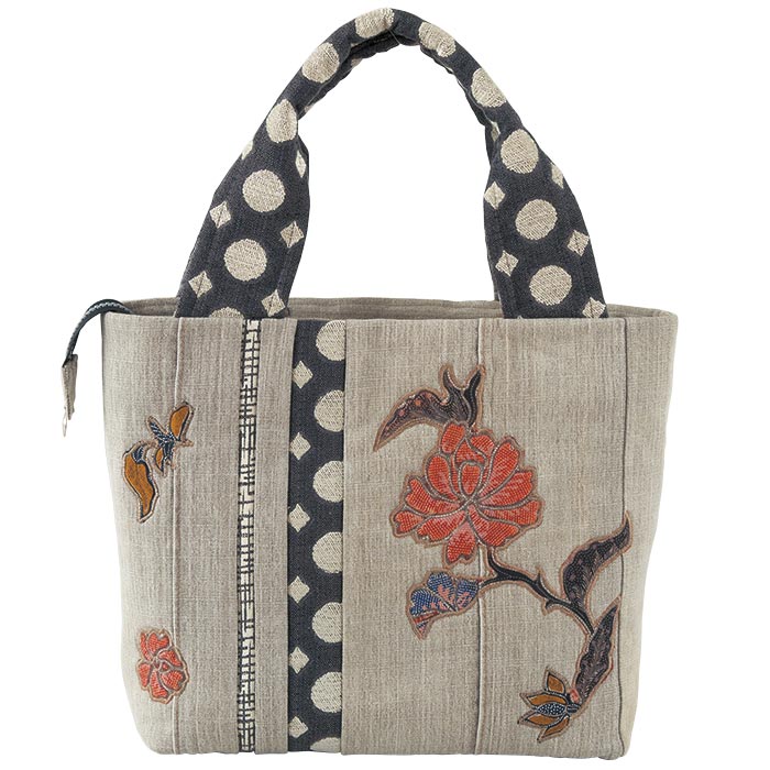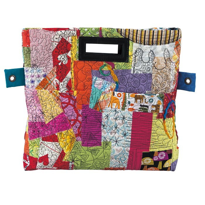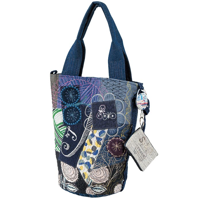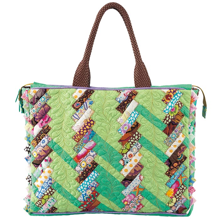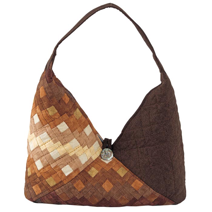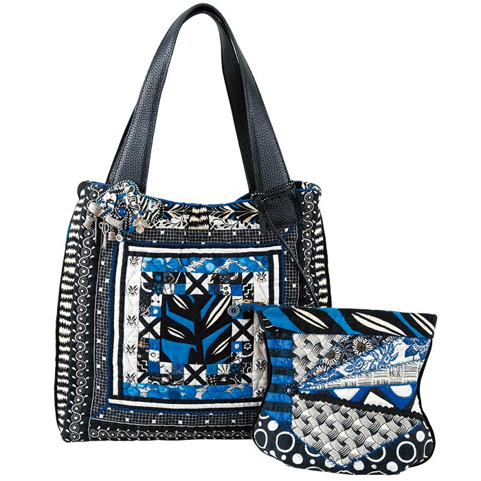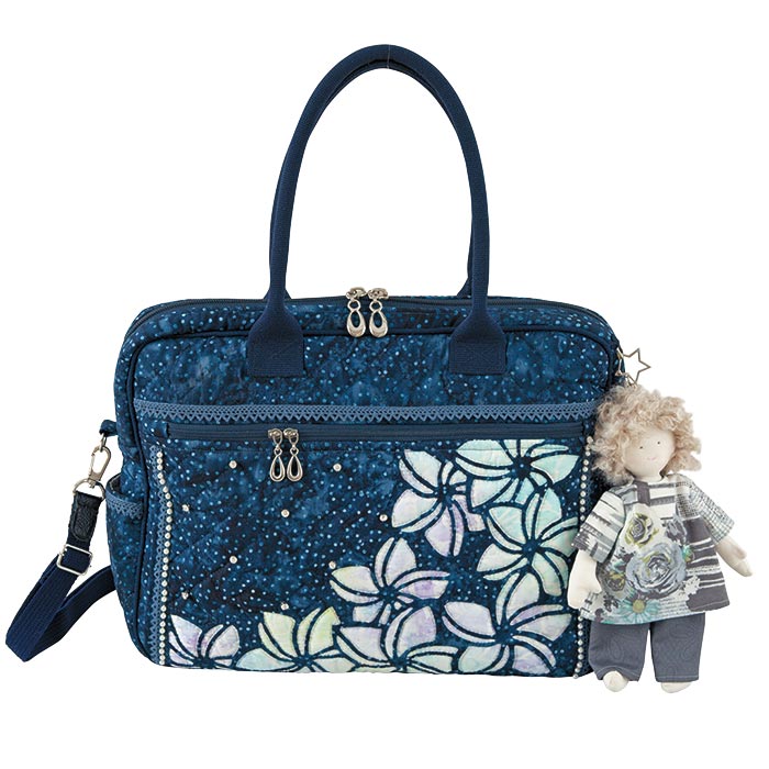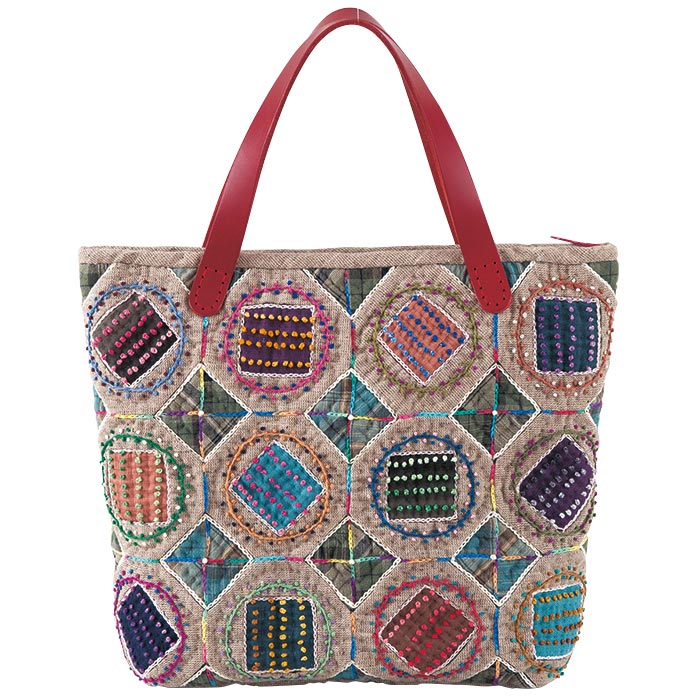 キルトジャパン編集部:パッと目に飛び込んでくる華やかなパッチワークをモノトーンでまとめた、印象的なバッグだと思います。