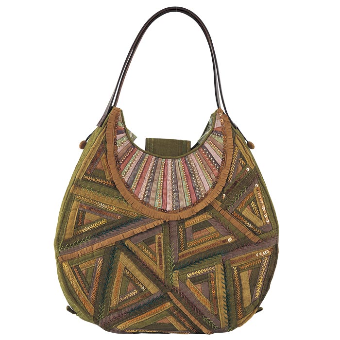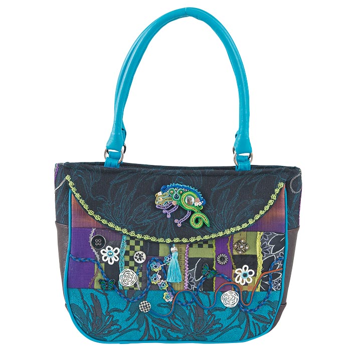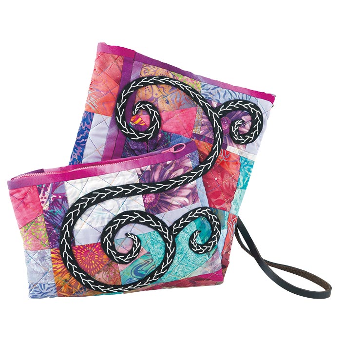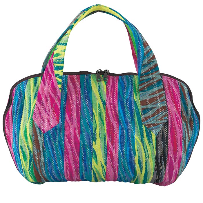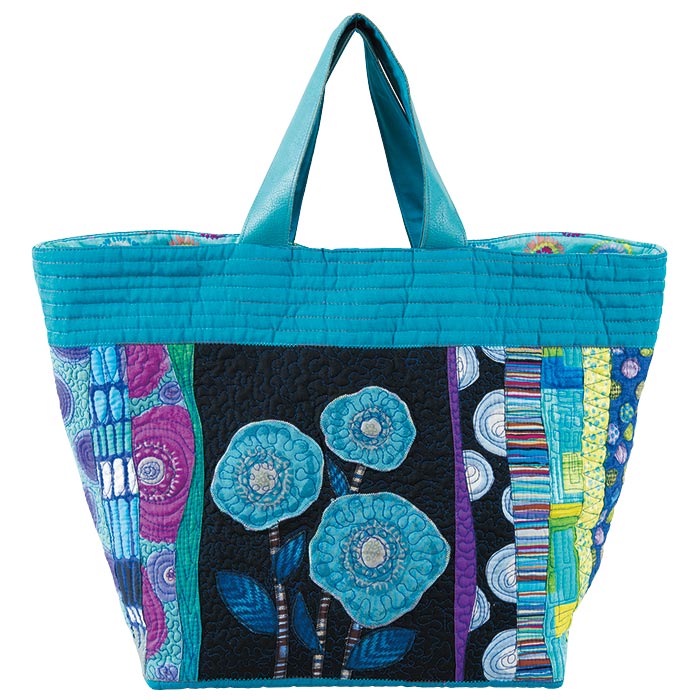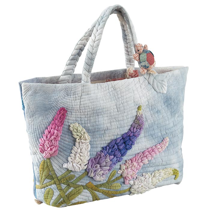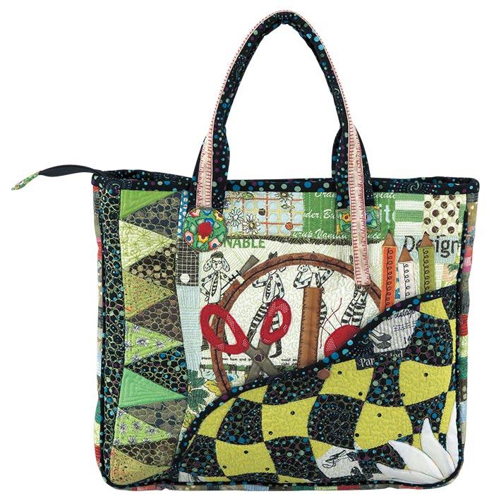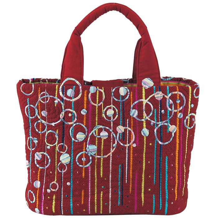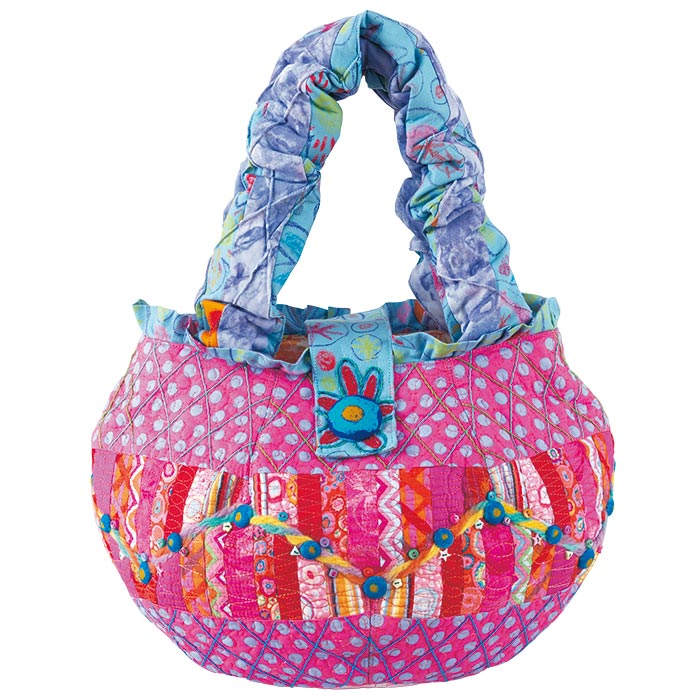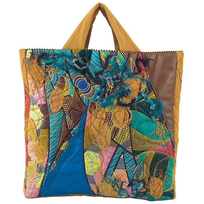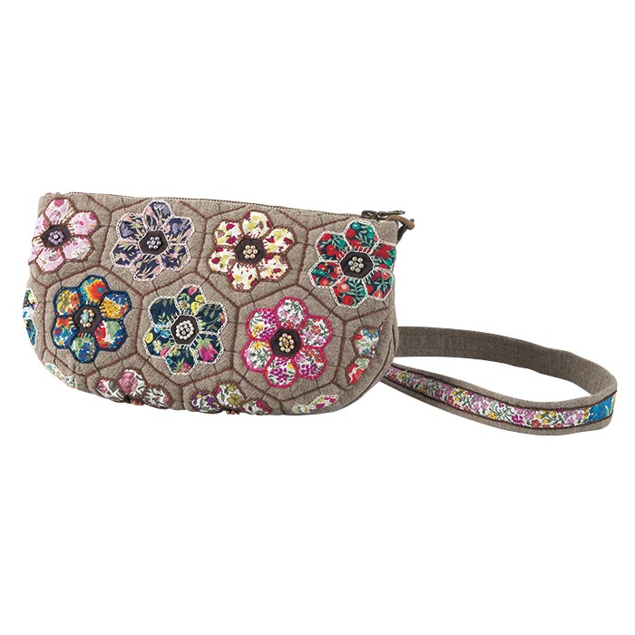 キルトジャパン編集部:パッと目に飛び込んでくる華やかなパッチワークをモノトーンでまとめた、印象的なバッグだと思います。