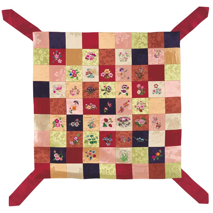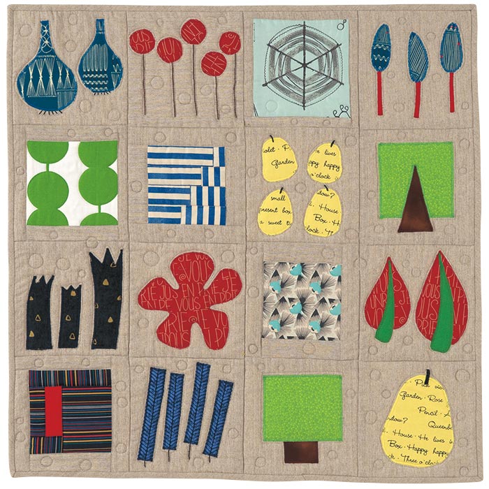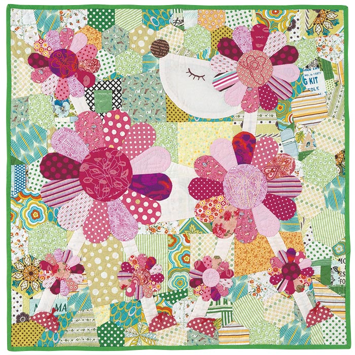 キルトジャパン編集部:配色センスの素晴らしさを感じます。奇をてらわないオーソドックスな本体に、形を揃えないで配置した四角のアップリケが効果的です。