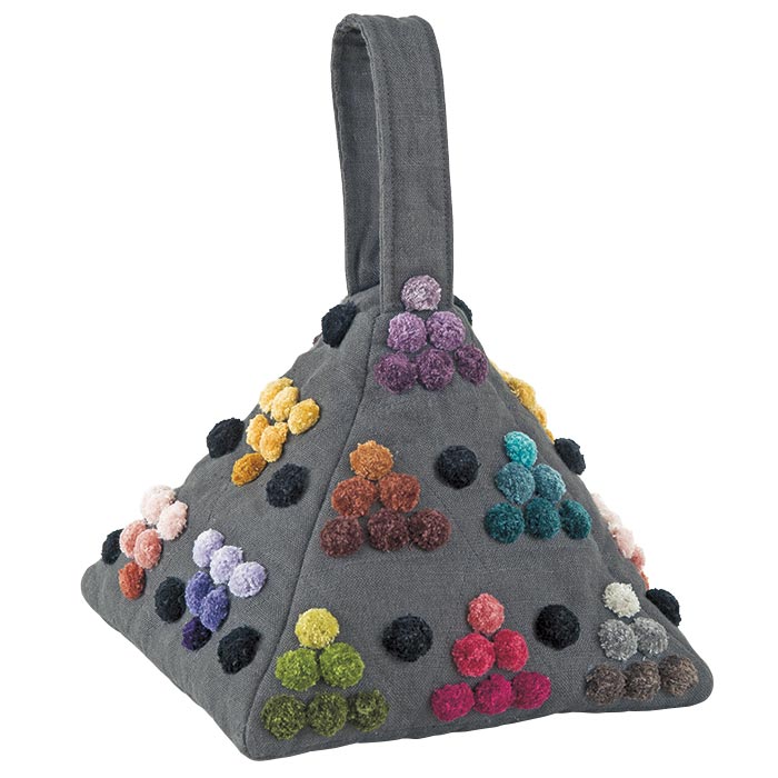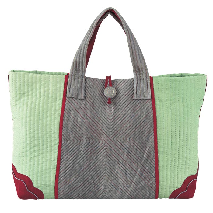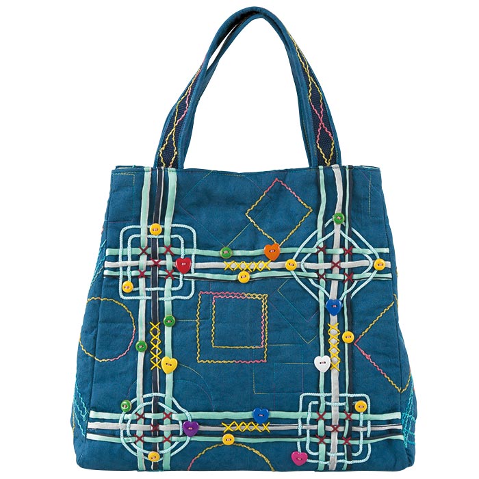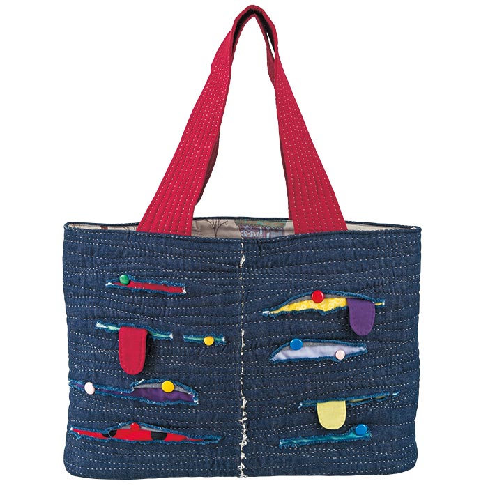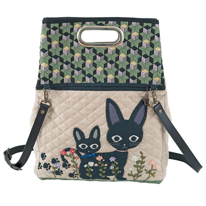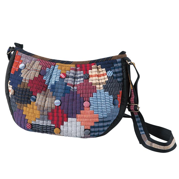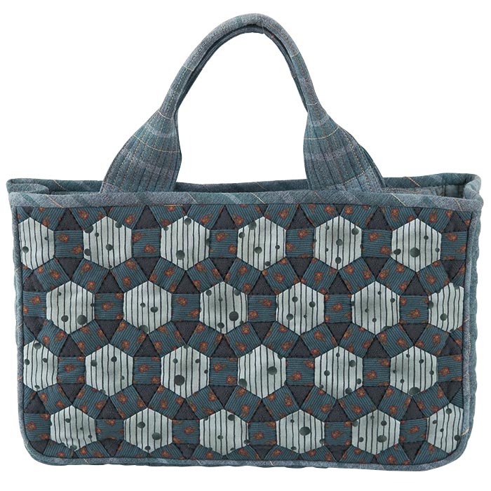 キルトジャパン編集部:配色が素敵です。ウールを使ってしっかり作られていて、大人が持つのにいいですね。前側と後側のデザインが違うのも楽しいところです。