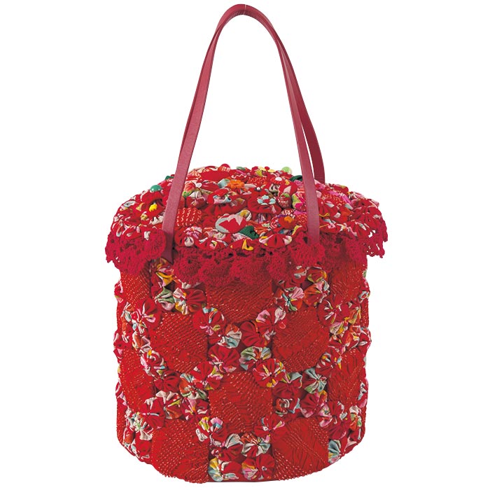 笹倉幸子:生地の使い方が上手な作品です。永遠に古くならない素材選びに加え、持ち手につけた羊をイメージするモコモコが効いています。
