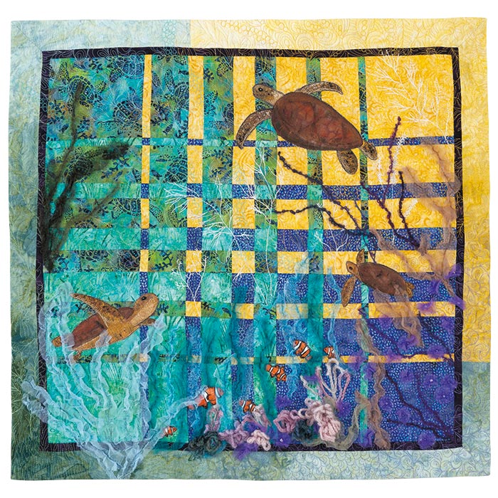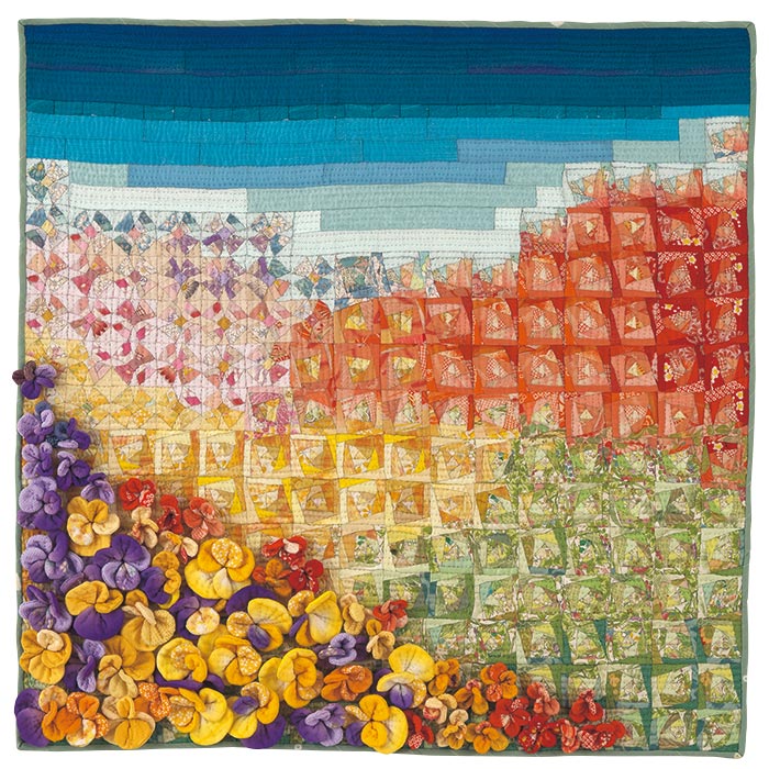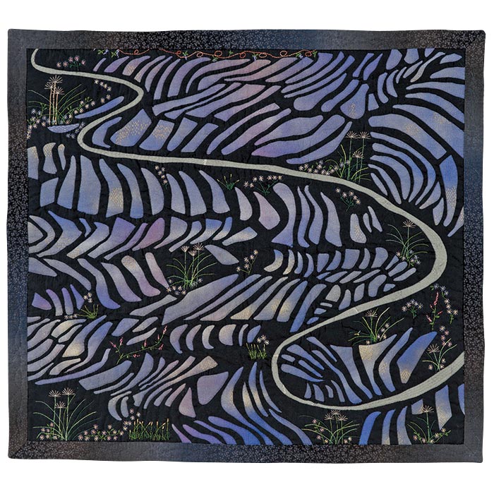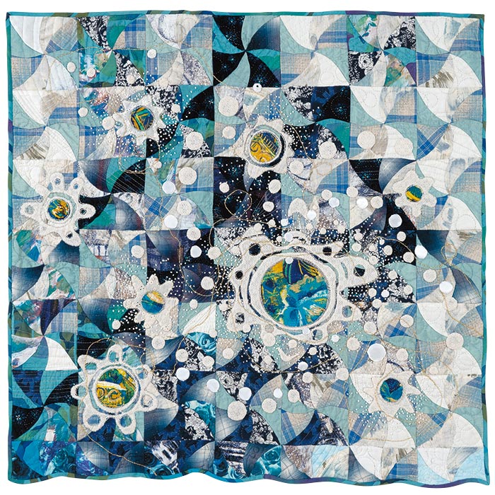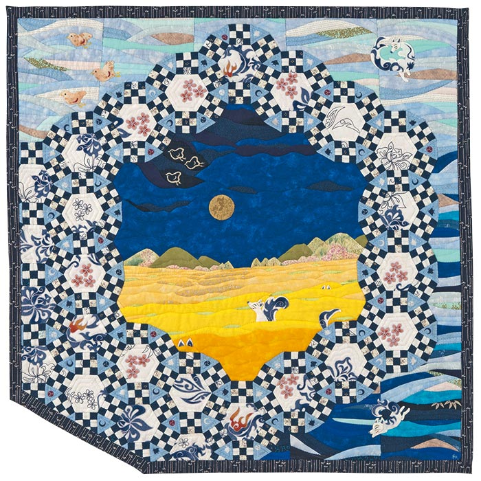 キルトジャパン編集部:配色、構成ともにテーマが生かされ奥行きを感じる作品です。ミシンキルトの入れ方でふっくらとした質感に仕上がっているのも良いと思います。