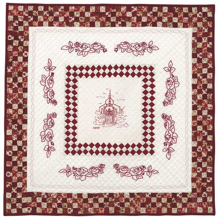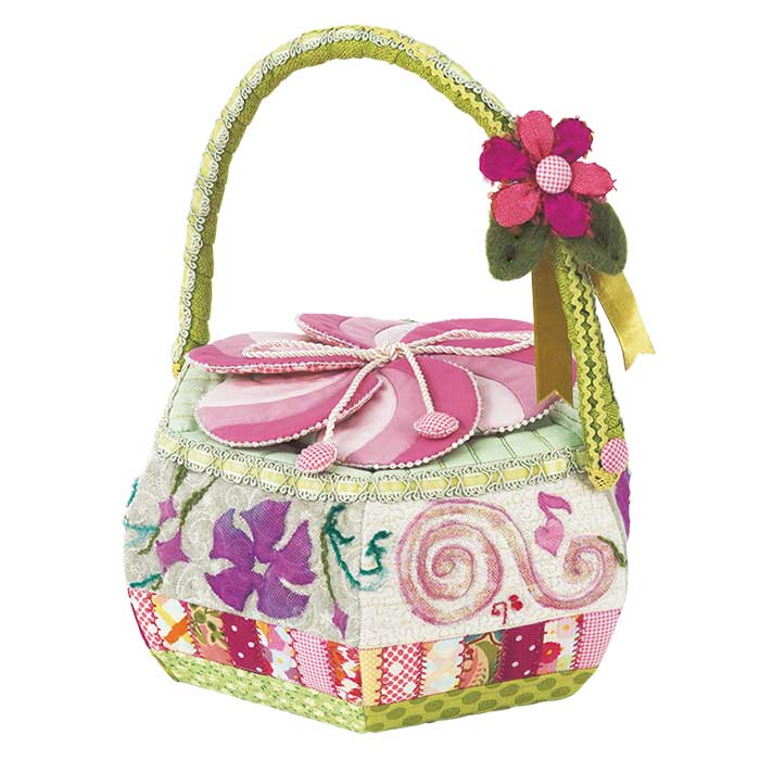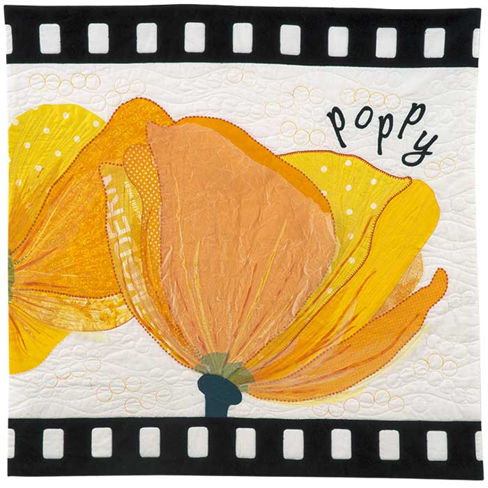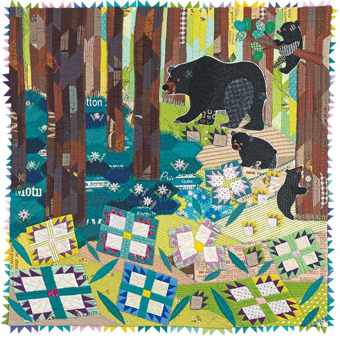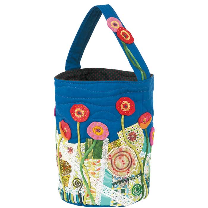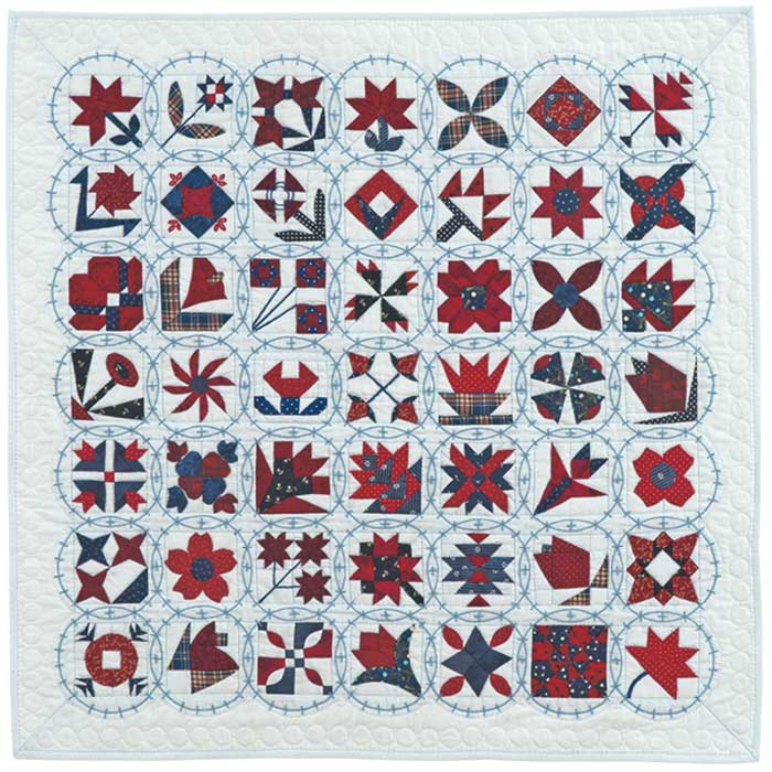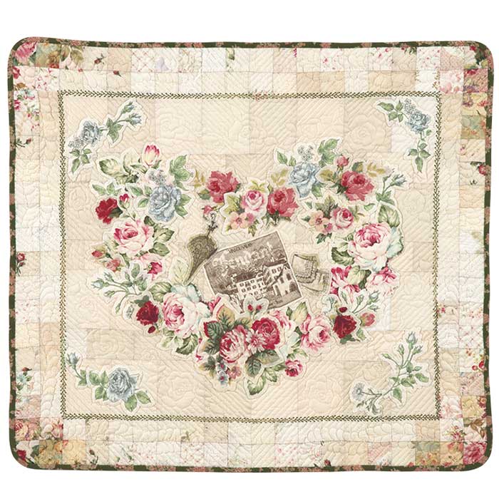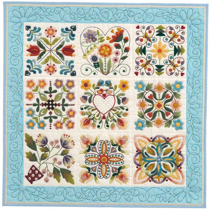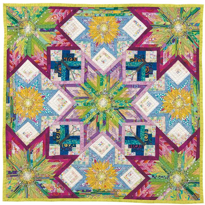 編集部:花びらの中に入れ込んだいろいろなパターンのピースワークがとても楽しい作品です。大胆に配置した花のデザインも素敵です。